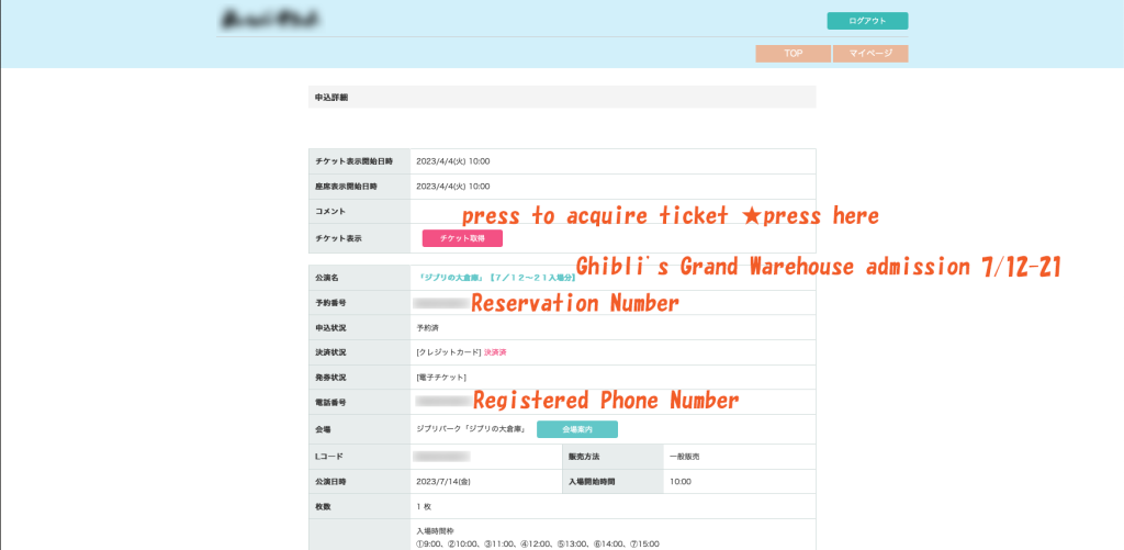1. View “Ghibli’s Grand Warehouse” ticket details part
